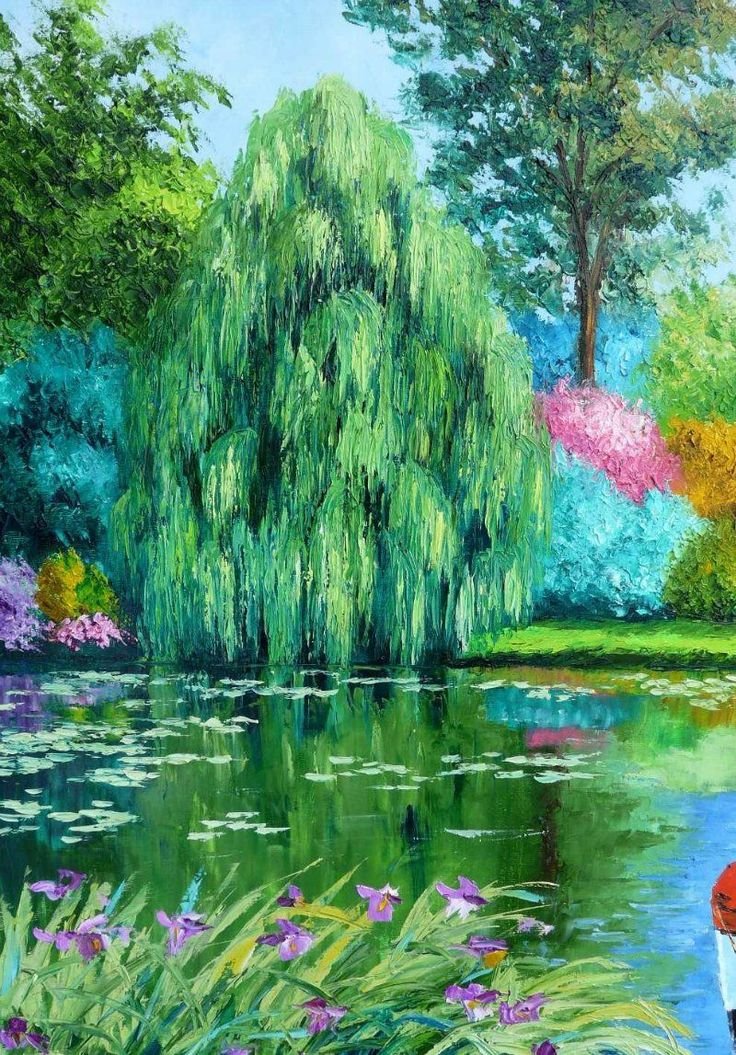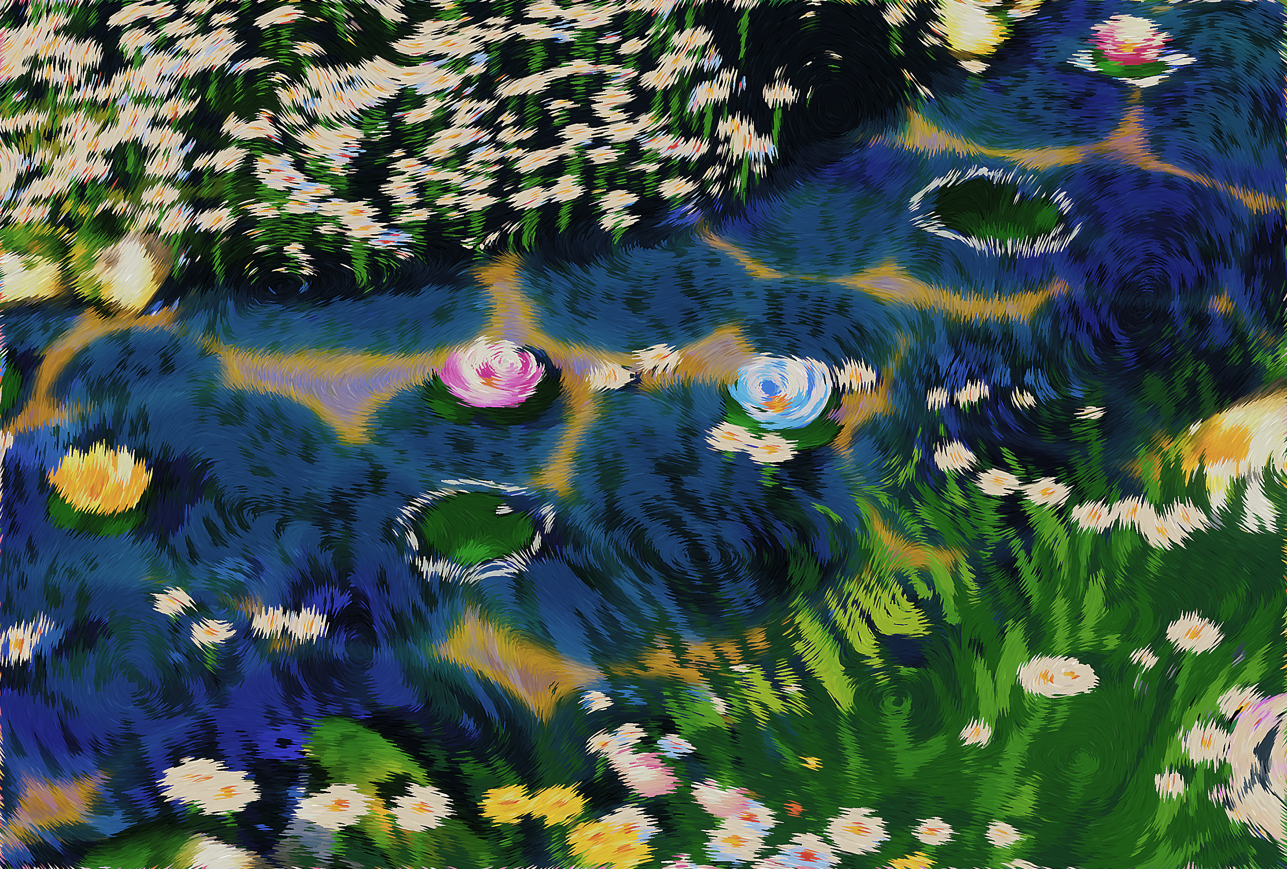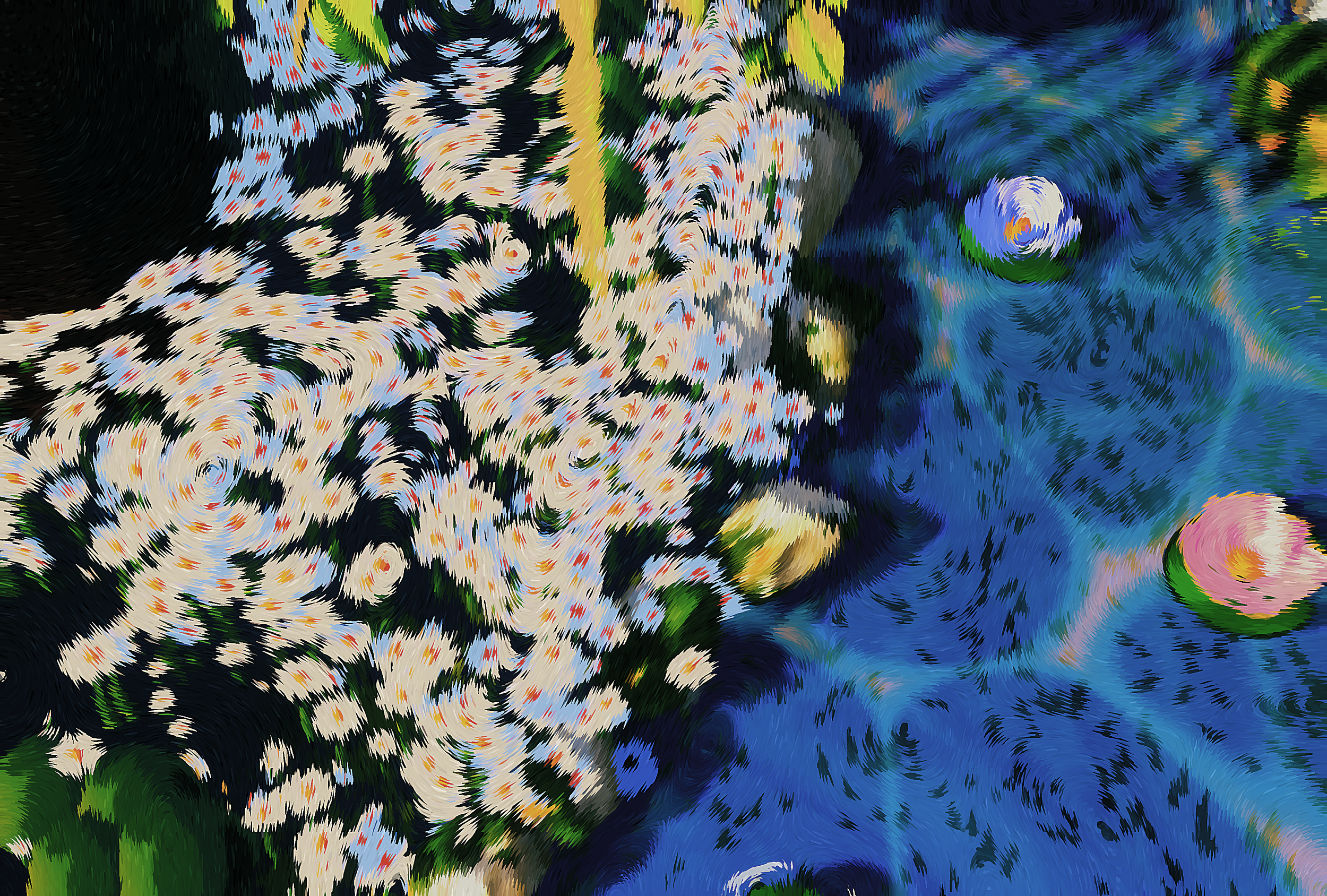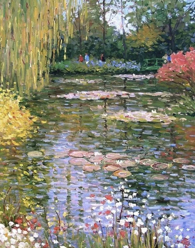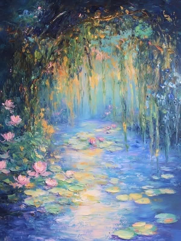 I used to take art history classes and became particularly inspired by Impressionism, especially through Claude Monet’s paintings such as “Nymphéas” (1904) and “Le Jardin de l'artiste à Giverny” (1900) , as well as Vincent van Gogh’s infamous Starry Night. From there, I looked for additional references within that style, leaning a bit more toward Van Gogh, focusing on natural scenes filled with flowers, grass, and richly colored rural landscapes.