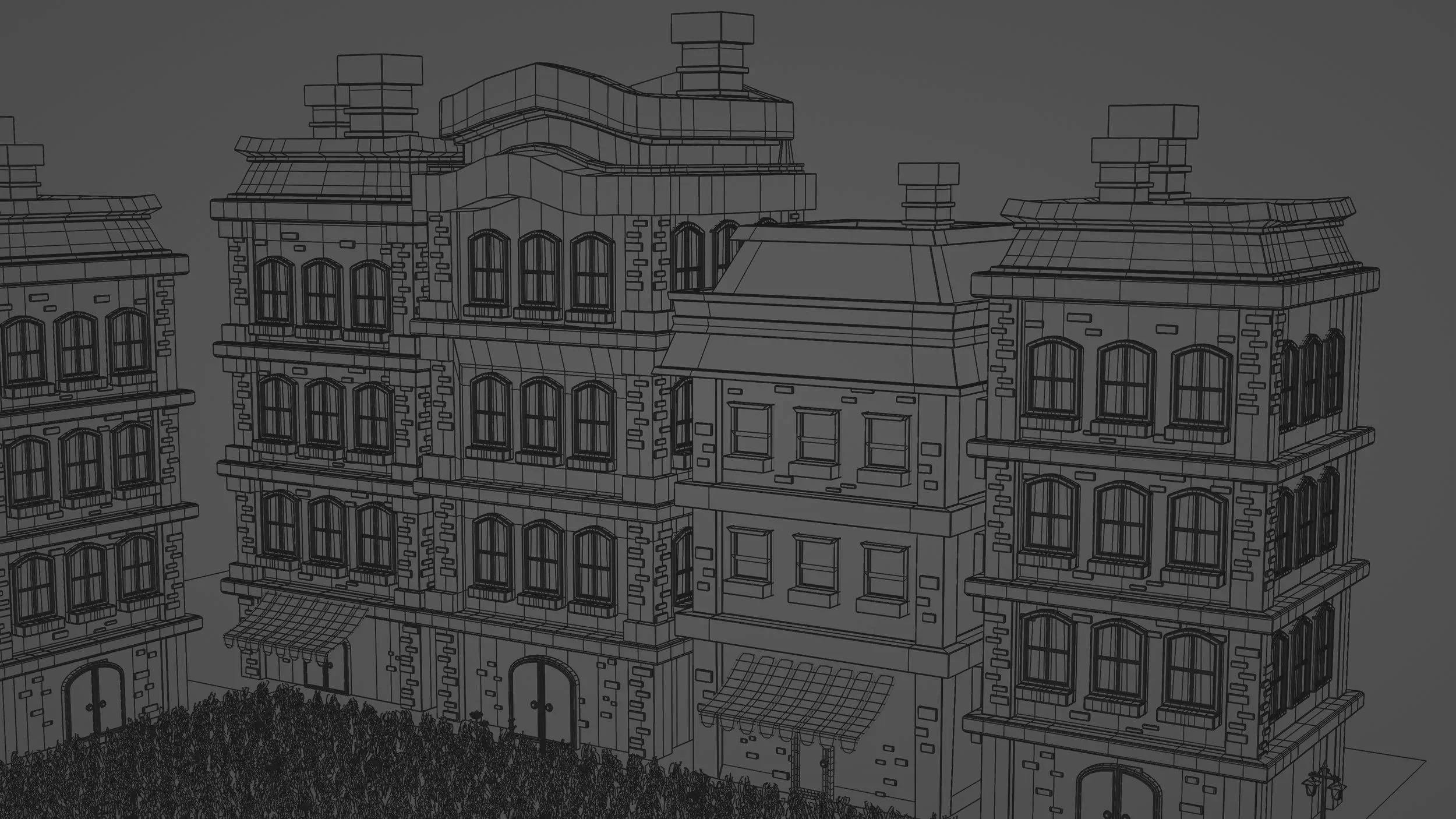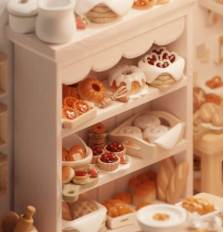Most of the buildings were basically big cubes pushed and shaped with bevels, loop cuts, and extrusions along normals, with very little subdivision. Since the pastry interior was already packed with detail, I had to keep everything optimized so the viewport wouldn’t get too laggy.