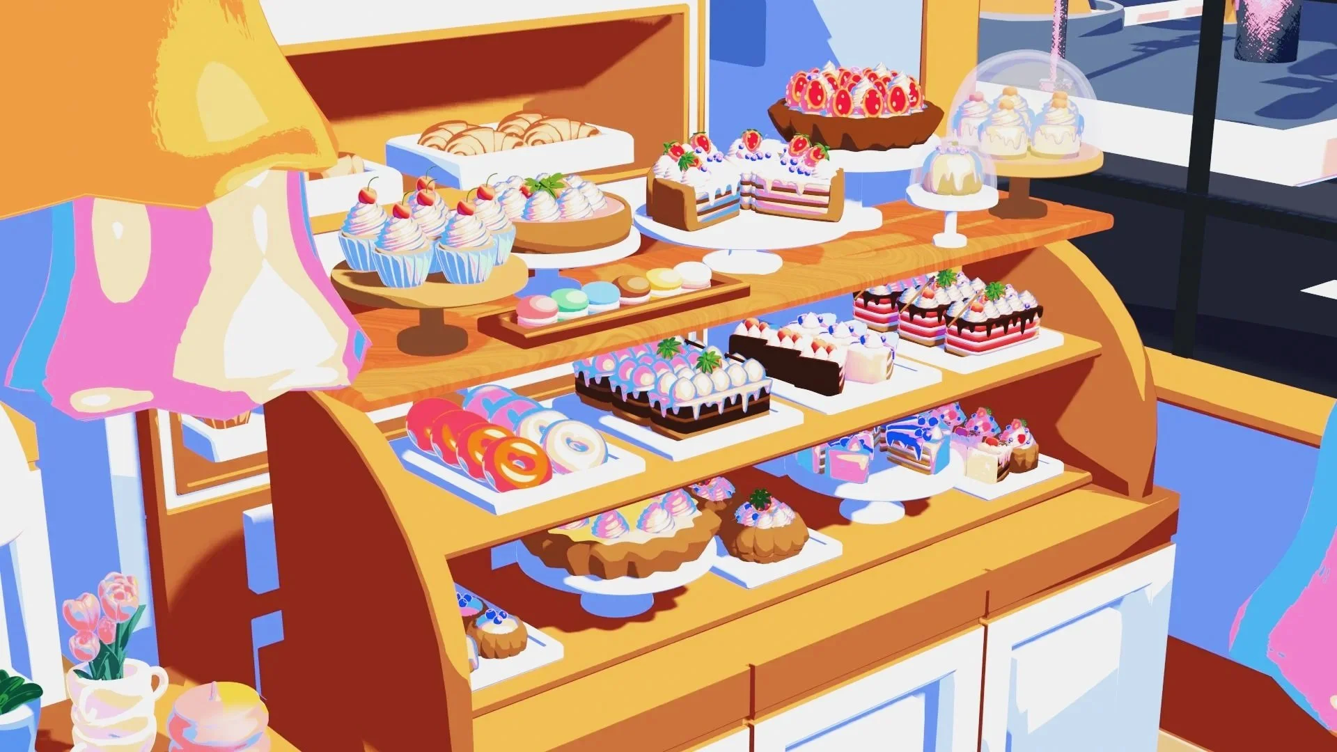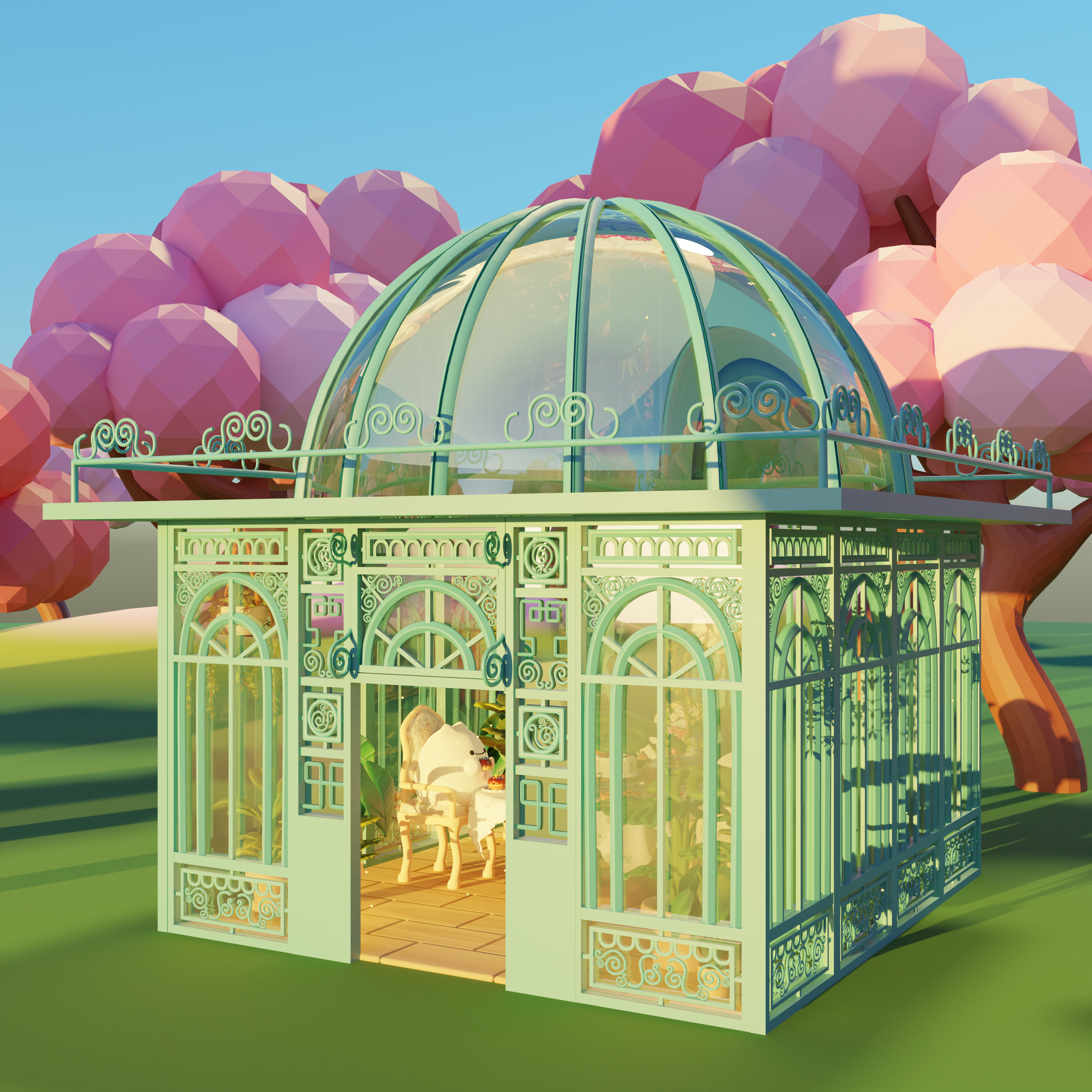 At first, the setting was supposed to be a greenhouse-style pastry shop, based on a model I had made earlier and just needed to clean up a bit. But pretty quickly, I realized it wouldn’t work for the final scene since everything was glass and I needed stained walls for the story. So I ended up redesigning the pastry shop from scratch. On top of that, the environment was originally meant to be just grass and flowers, but it felt way too empty, so I reworked the whole thing about ten days before the deadline. Definitely one of the most intense modeling speedruns I’ve ever done.