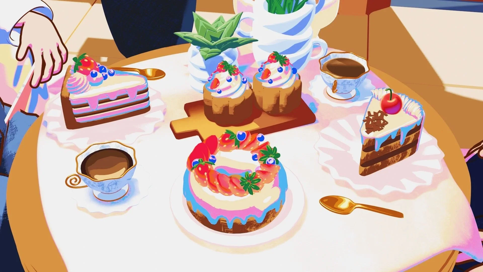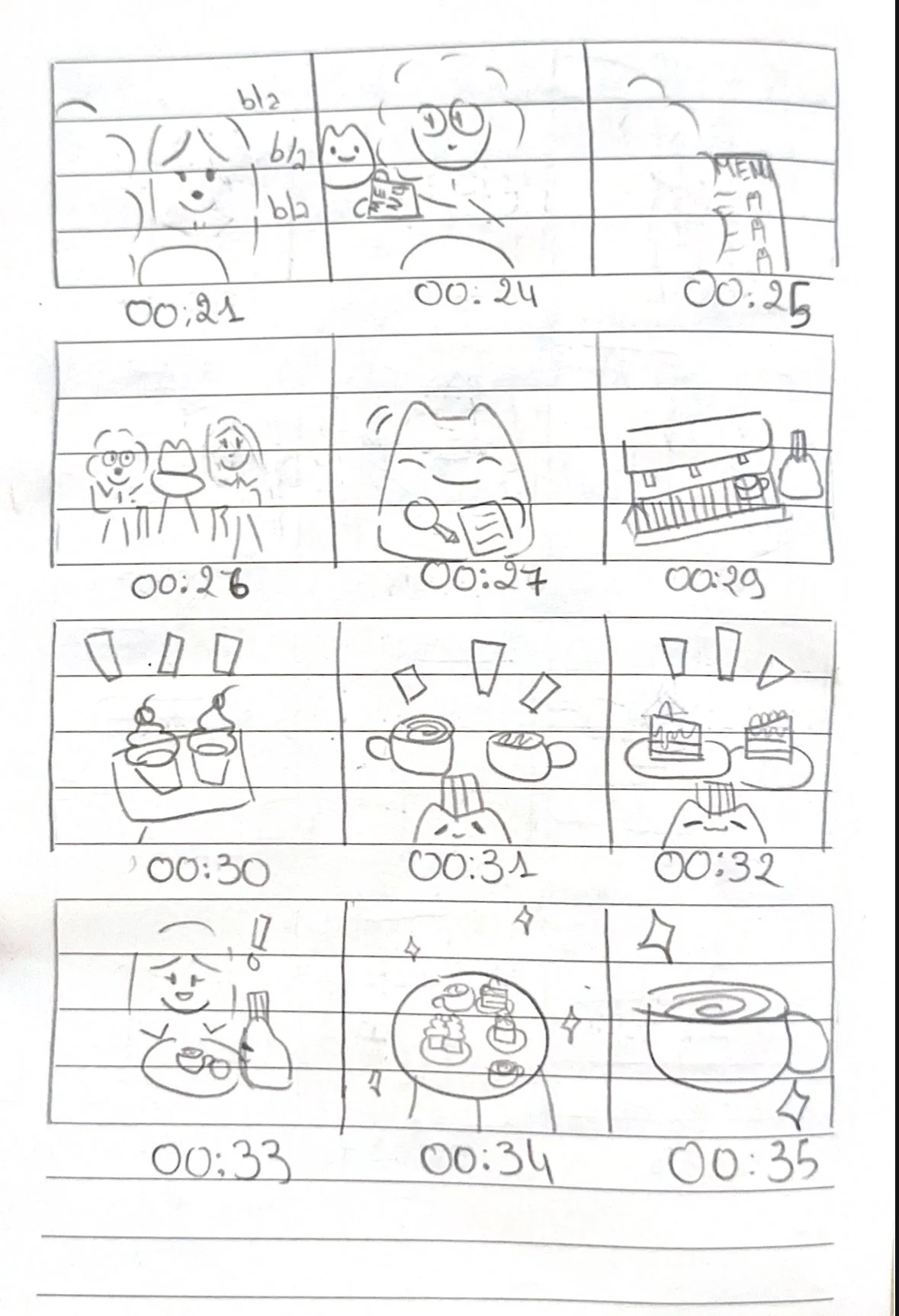 Originally developed as part of a school animation assignment, this project was conceived as a lighthearted narrative centered on two friends spending time together in a pastry shop run by quirky alien cat characters. What begins as a simple, playful encounter gradually unfolds into unforseen shenanigans.