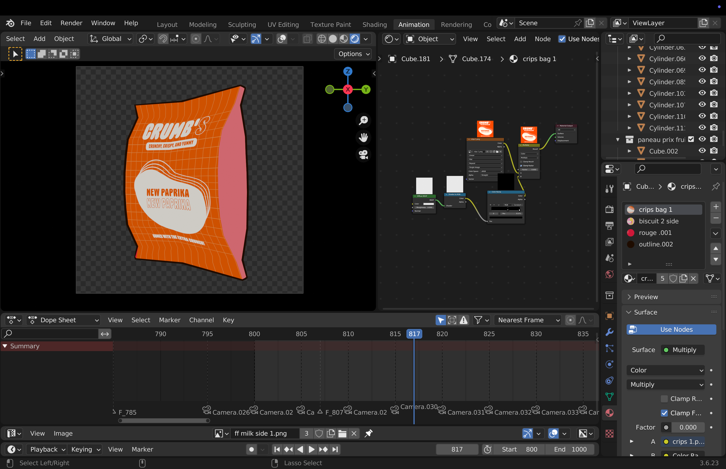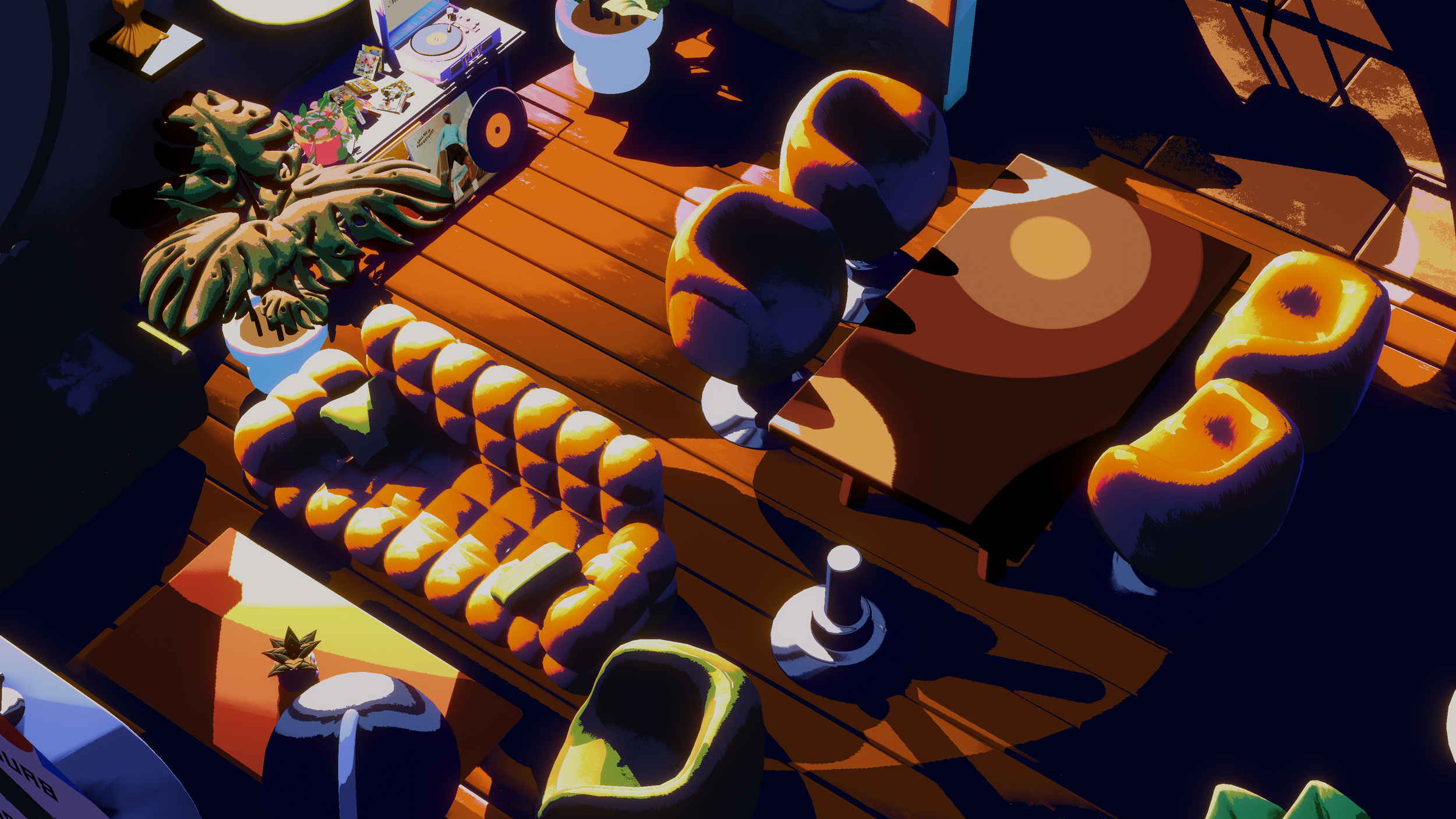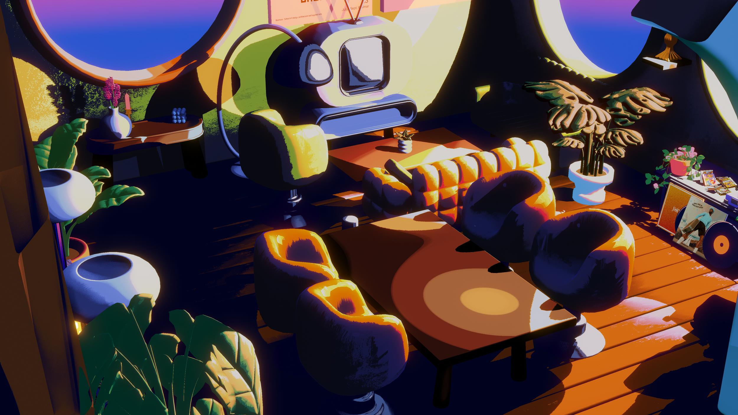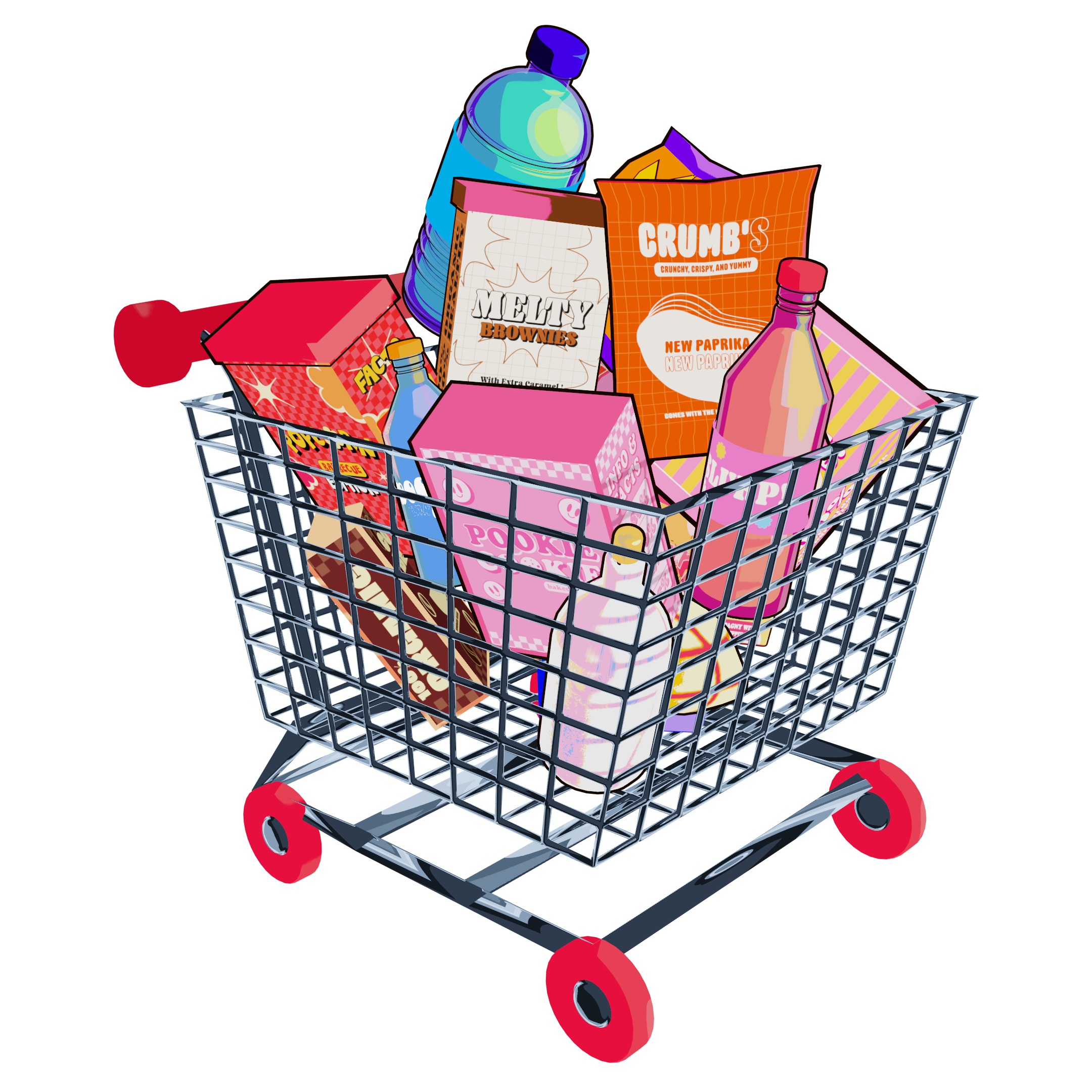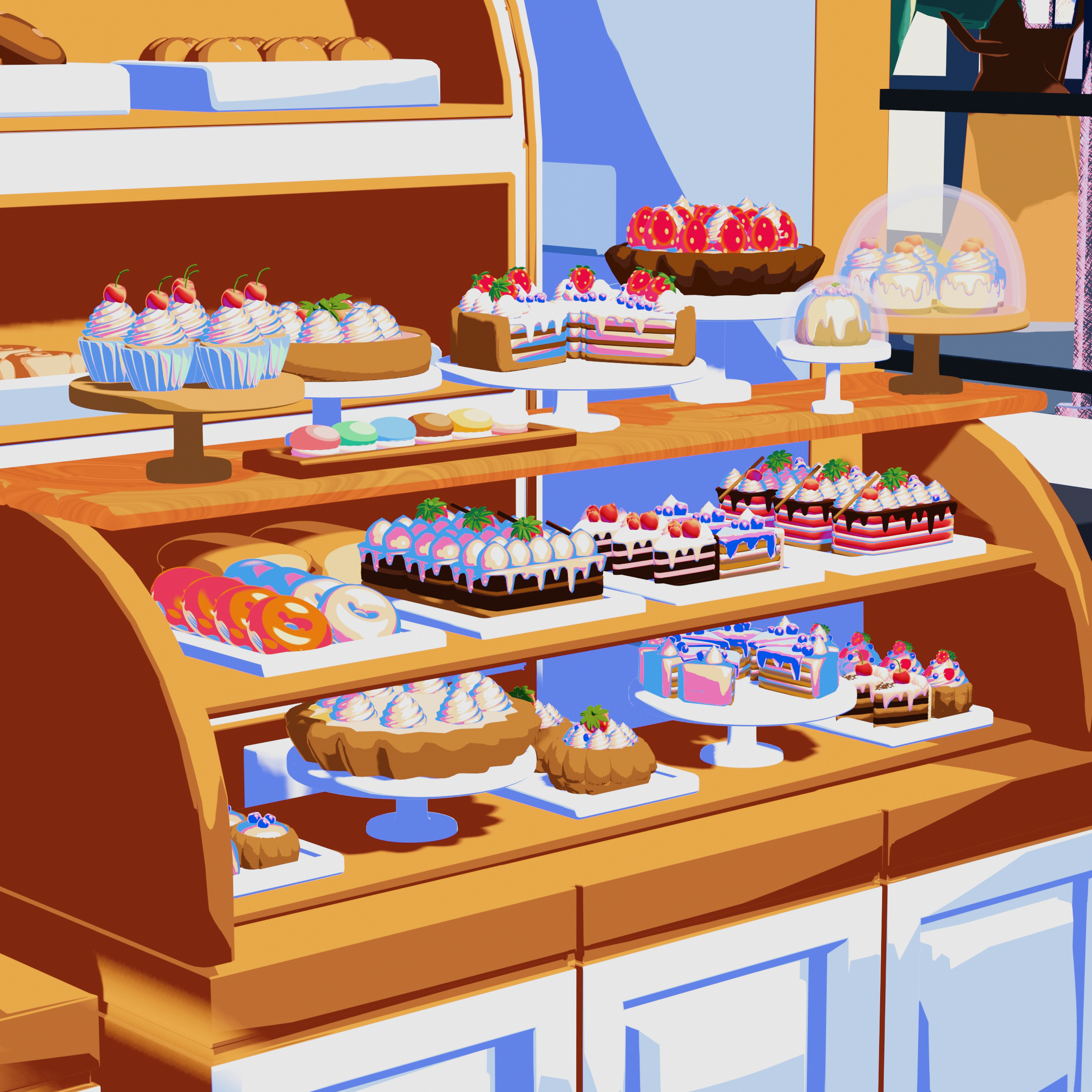 Each product was individually modeled and textured in Blender, while the graphic design for the packaging was created in After Effects. The color palette relies on bright, saturated tones to reflect the vibrant energy of the Nesworld. I mainly use yellows, pinks, blues, and hot pinks to emphasize its colorful, playful atmosphere.